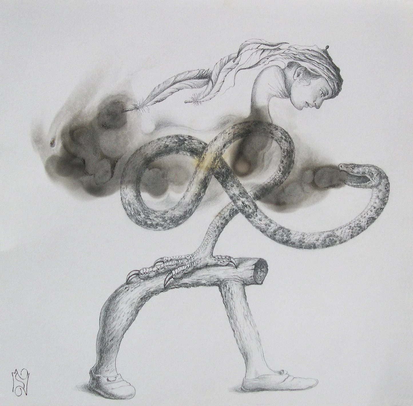 A cadavre exquis graphite drawing with fumage, in collaboration with Sasha Vlad (San Francisco).